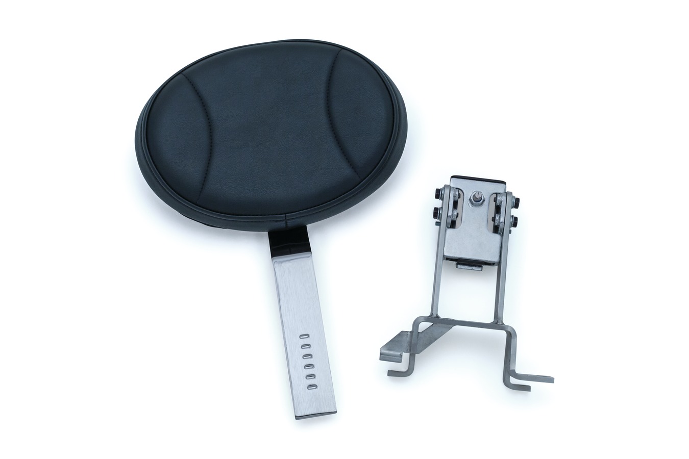 The adjustable Plug-N-Go Driver Backrest for Indian models offers enhanced comfort for long hauls and custom styling at a price that can’t be beat. The pad’s contoured design provides the perfect amount of lower back support that can be dialed in to suit the needs of virtually any rider. Adjust the height by simply pulling up or down to mate the coordinated notches with the included steel mounting bracket that mounts to the frame beneath the rider’s seat. Front and rear adjustability can also be set up upon installation to provide support exactly where it’s needed. Premium synthetic leather outer construction complements the factory saddle.
