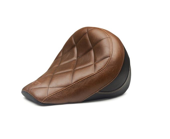 The Standard Touring solo keeps the old-school bobber styling intact, while also delivering a significant upgrade in rider comfort and positioning. The 13” wide solo is 2” wider than stock with a contoured bucket that offers excellent lower back support, keeps the rider at a similar reach to the controls and eliminates sliding back in the saddle so you can ride hard and rack up the miles. Choose smooth and textured black vinyl, or opt for the classic contrasting distressed brown with textured black vinyl. Which ever you choose, both are guaranteed to enhance style with large diamond-stitched center panels and reinforced double stitching on the sides.